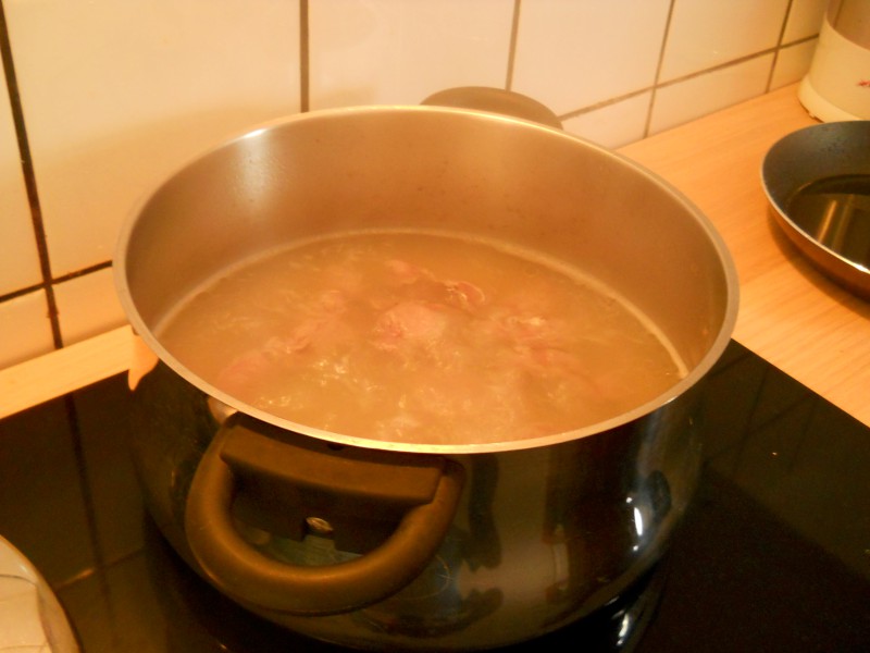 Se fierb pipotele. Se fierb pipotele. Se fierb pipotele. Se deschid geamurile (miros!). Se fierb pipotele. In timpul asta se curata cartofii, se intind rufele, daca vecinii au nevoie de o mana de ajutor, orice, puteti lipsi. Se fierb pipotele.