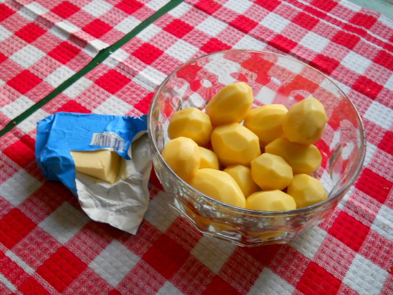 Separat se face piureul. Se pun pe aceeasi farfurie. Se face poza cu telefonul mobil, ca aparatul foto nu era la indemana…
