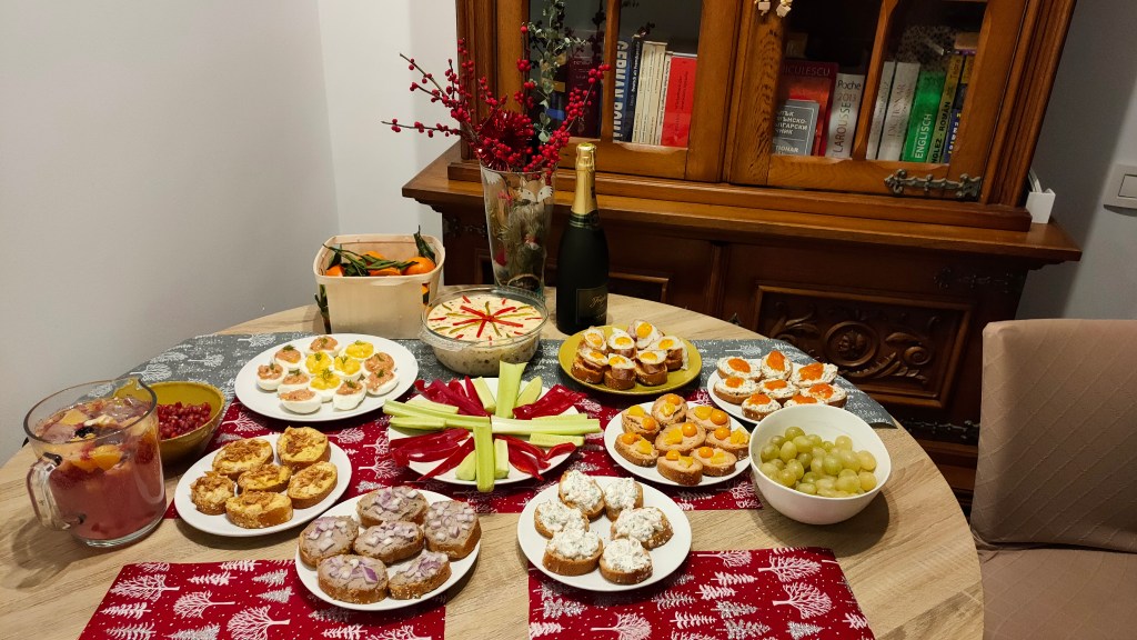 După ce am fost prima dată în Barcelona și am mâncat pinchos pe Blai, de fiecare revelion petrecut acasă am făcut platouri de gustări, mai mult sau mai puțin inventate, mai mult sau mai puțin spaniole. În fiecare an îmi ia ceva vreme să îmi aduc aminte care mi-au plăcut și ce anume am folosit, așa că acum le pun aici pe cele de anul ăsta.