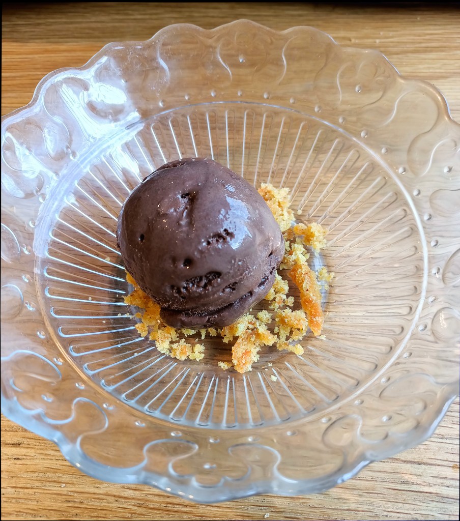 Atât aperitivele cât și felurile principale au fost foarte bune; dacă e să aleg, aș spune că felul principal a fost foarte puțin peste aperitiv. Dar poate doar unde sunt eu carnivor… Desertul a fost corect dar neinteresant, în mod evident nu e specialitatea lor. Luiza a glumit despre tarta ei zicând că „nici măcar un neamț n-ar considera asta un desert” – se știe că nemților le plac tartele cam la fel de mult pe cât nu le consider eu demne de numele de desert. Am gustat, era o tartă, greu să faci din tartă avion.