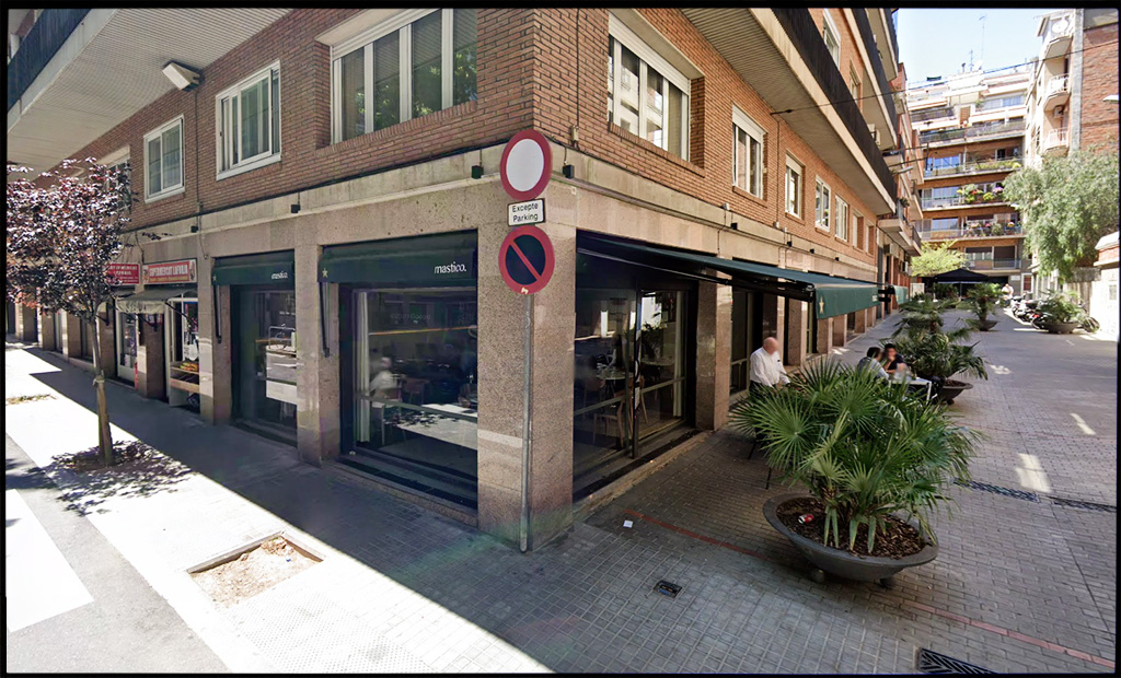 E vineri la prânz, deci avem rubrica „restaurantul de lângă casă”. Am fost chiar pe strada noastră, la sub două minute de mers pe jos, la restaurantul Mastico (Carrer de Laforja colț cu Carrer de Moliné).