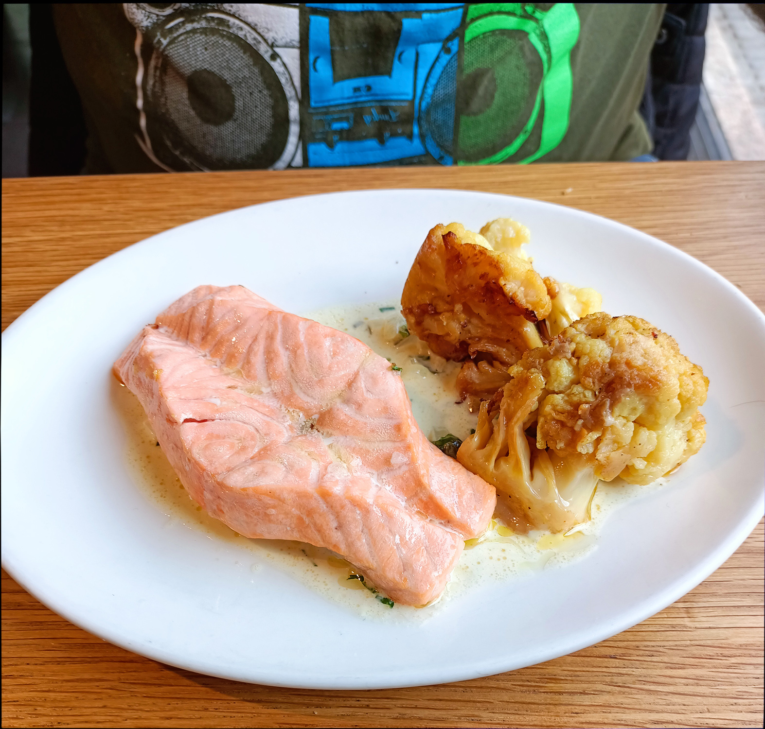 Mai fusesem aici în urmă cu aproape un an, tot la prânz, îmi aminteam că mâncasem o friptură foarte bună, dar că desertul mă dezamăgise, îmi aduseseră pur și simplu o jumătate de măr verde feliată. Atunci comandasem a la carte, azi am zis să luăm meniul zilei.
