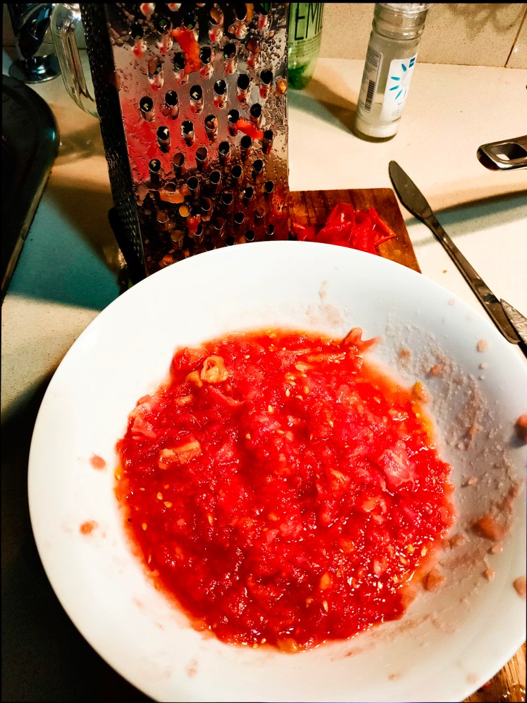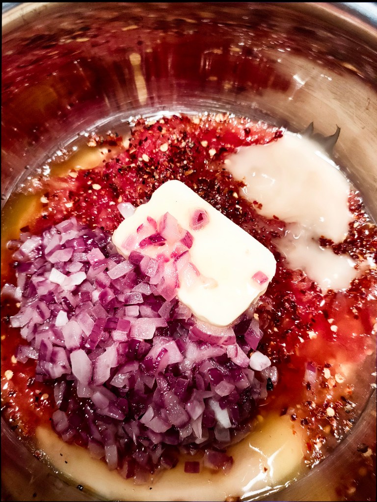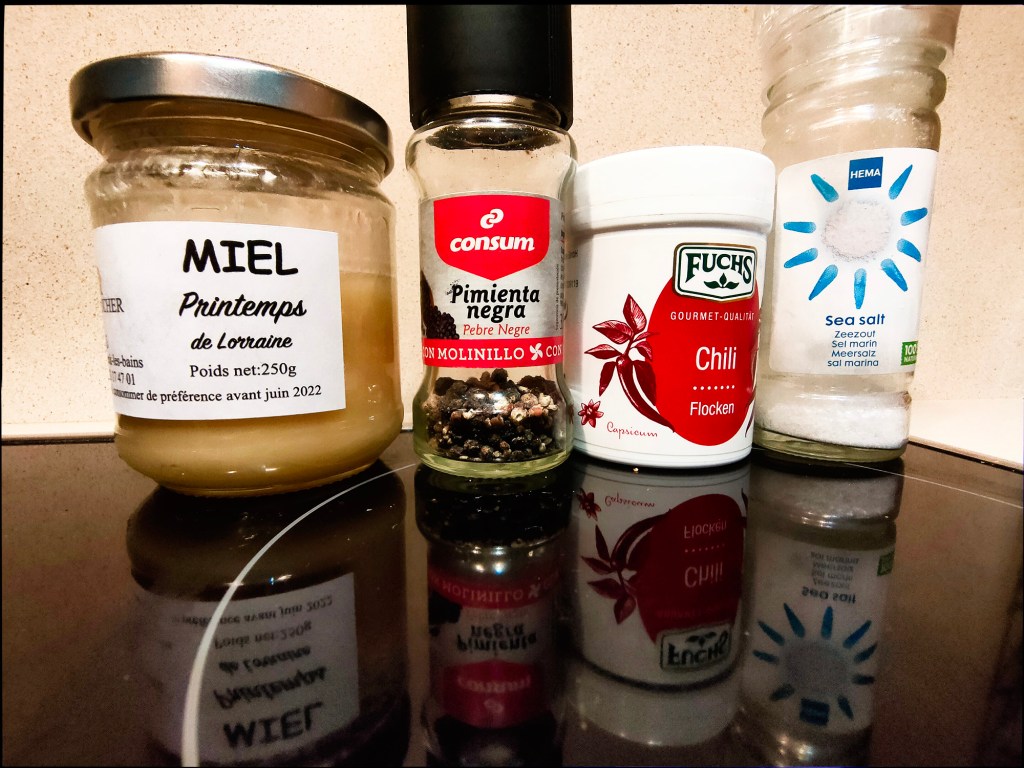 Prin urmare am facut eu. Pentru sos, se ia si se opărește o rosie mare. Se curata de coaja si se da pe razatoare. Se caleste o ceapa rosie intr-o tigaie cu unt. Se adauga peste rosia rasa, se condimenteaza cu piper, chilli, sare. Se adauga doua trei linguri de miere. Se adauga o bucata de unt. Se scade pe foc amestecand incontinuu timp indelungat (spre jumatate de ora) pana cand devine un sos destul de gros.